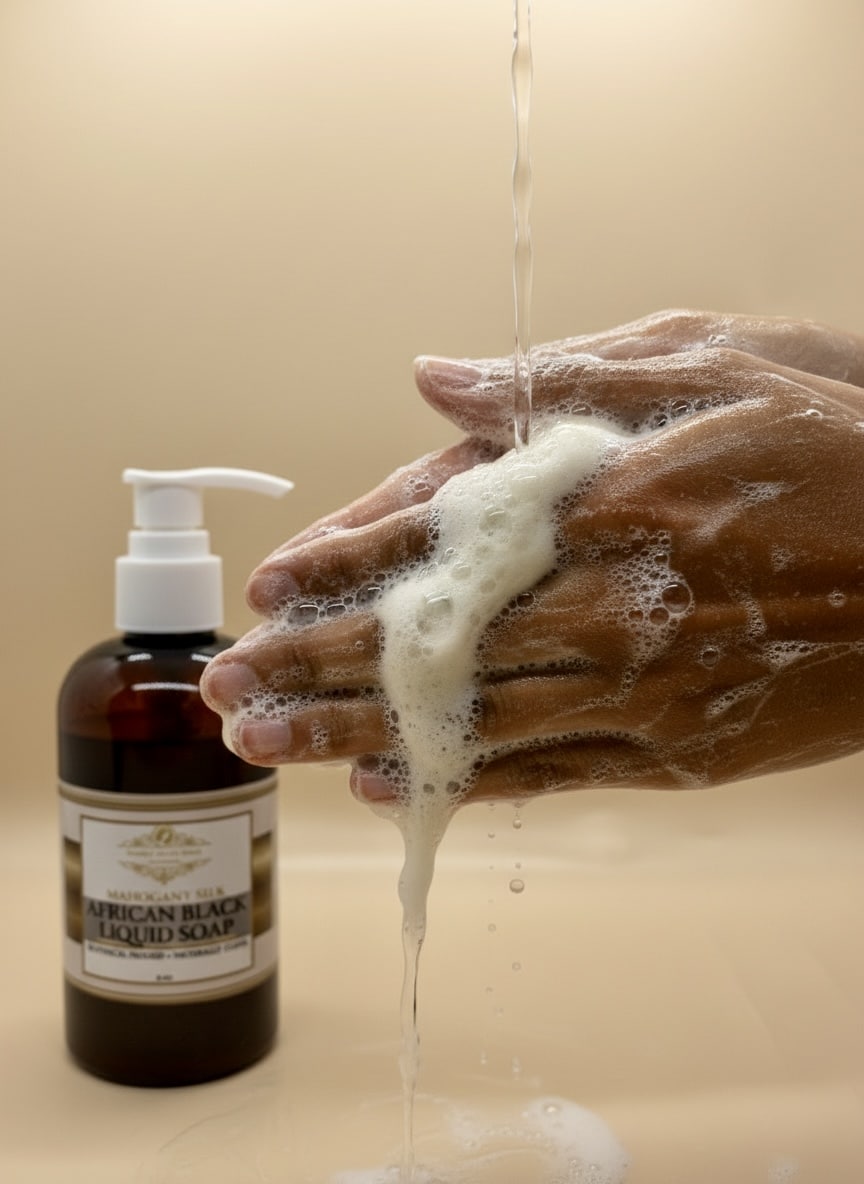 This liquid formulation transforms authentic African black soap into a smooth, silky cleanser designed for everyday use.