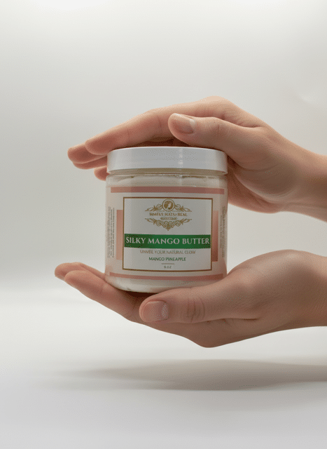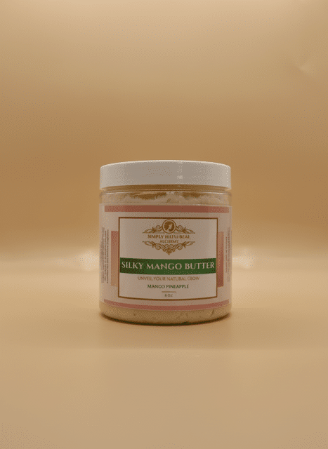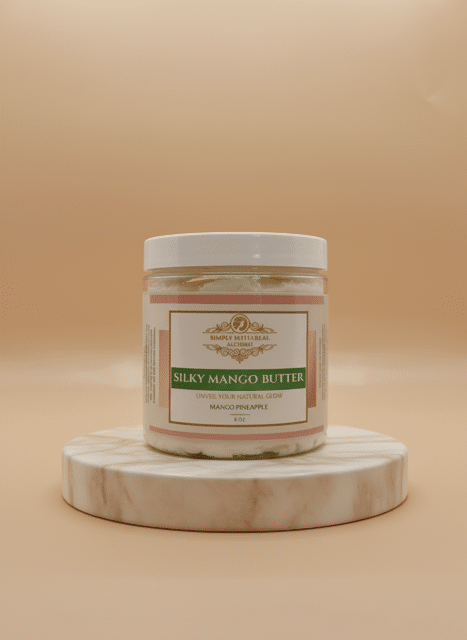 Silky Mango Body Butter by Simply Natu-Real Alchemy is crafted to deliver deep hydration with a smooth, non-greasy finish. This luxurious blend combines mango butter with jojoba oil and sweet almond oil to help soften dry skin, improve texture, and support long-lasting moisture.