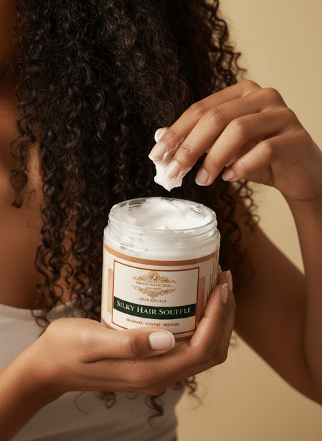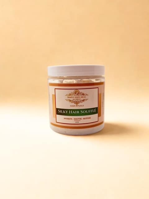 Nourish and strengthen the look of your hair with the Simply Natu-Real Alchemy Silky Hair Soufflé — a creamy shea butter blend enriched with herbal-infused oils for deeper conditioning and enhanced hair vitality.